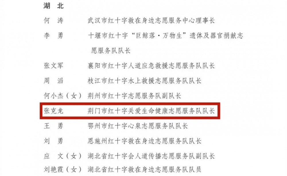 再次祝賀張克龍榮獲“全國紅十字志愿服務(wù)先進(jìn)典型”稱號!
