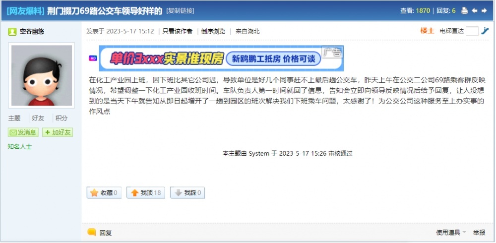 “太感謝了!為公交公司這種服務(wù)至上、辦實(shí)事的作風(fēng)點(diǎn)贊!”