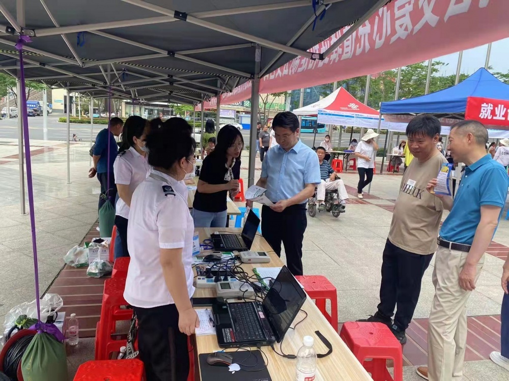 圖為工作人員現(xiàn)場(chǎng)發(fā)放服務(wù)指南,為殘疾人士詳細(xì)講解愛(ài)心卡的辦理流程和注意事項(xiàng),并聽(tīng)取他們的意見(jiàn)和建議。