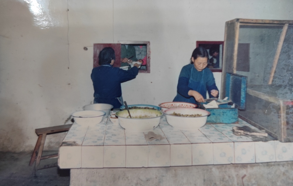 ▲80年代,職工食堂工作場(chǎng)景。每天清晨開(kāi)始切配食材。