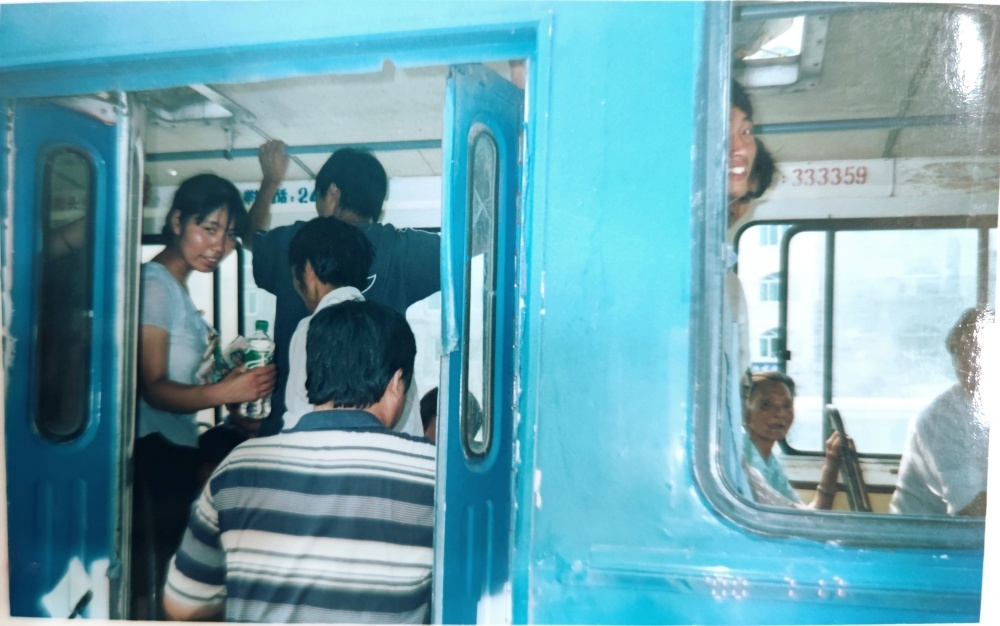 ▲00年代,售票員工作場(chǎng)景。售票員站在車(chē)門(mén)口,微笑迎著上車(chē)乘客。