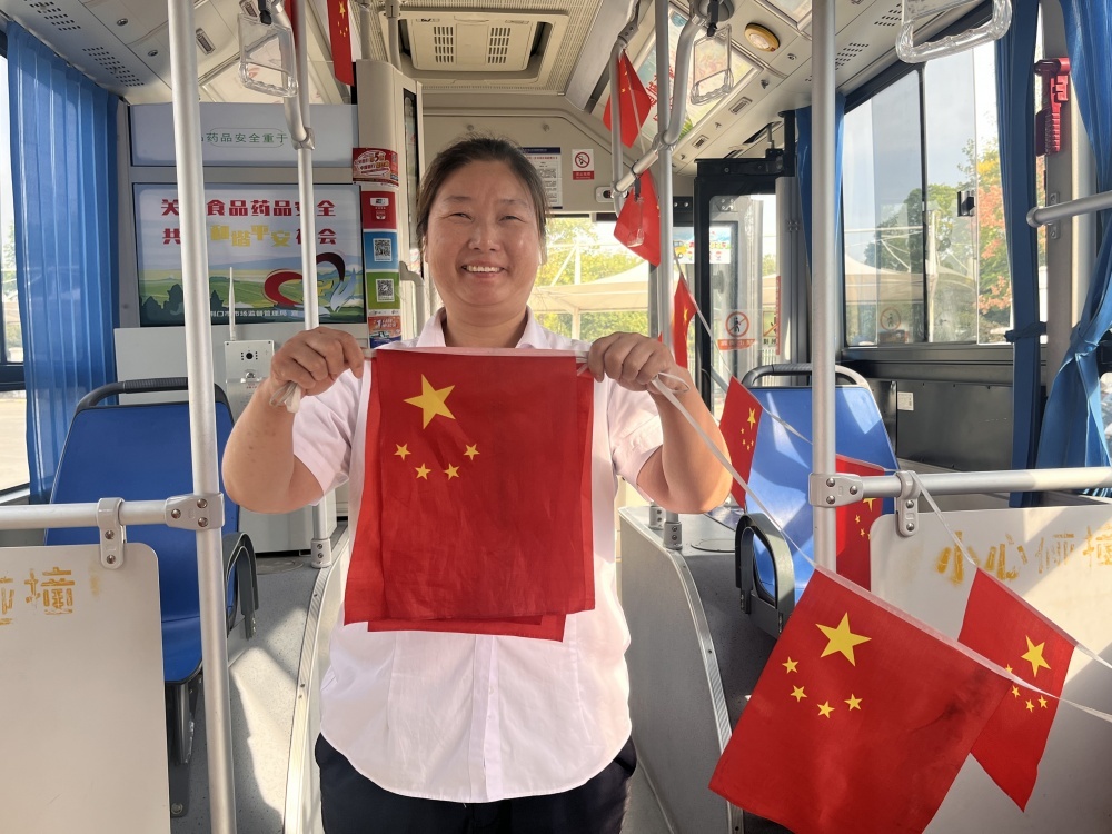 走進(jìn)公交車(chē)廂,映入眼簾的是一面面鮮艷的小國(guó)旗,輕輕飄動(dòng),仿佛在向每一位乘客傳遞著節(jié)日的喜悅和祝福,除了車(chē)廂內(nèi)部的裝飾,公交車(chē)輛的LED顯示屏也成為了重要傳播窗口,全天滾動(dòng)播放國(guó)慶祝福語(yǔ)。這些細(xì)節(jié)布置不僅為車(chē)輛增添了節(jié)日色彩,也讓市民的出行體驗(yàn)更加美好。