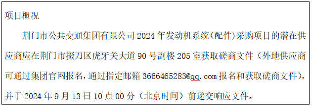荊門市公共交通集團(tuán)有限公司2024年發(fā)動機(jī)系統(tǒng)(配件)競爭性磋商公告